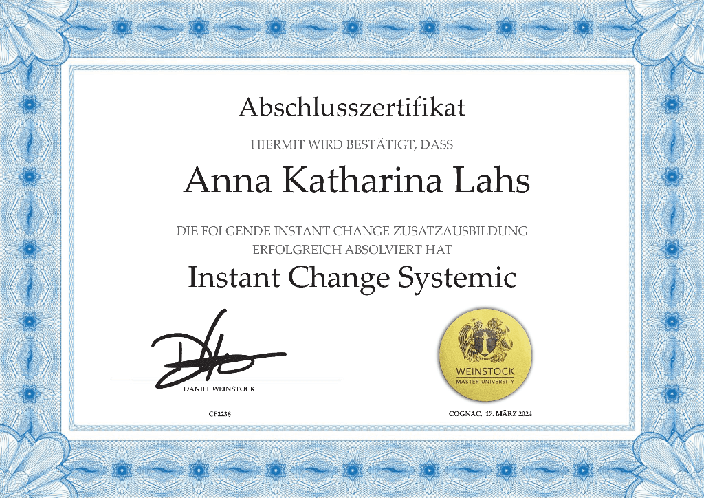 Februar 2024: Ausbildung zum Instant Change Professionel (ICP) bei Daniel Weinstock