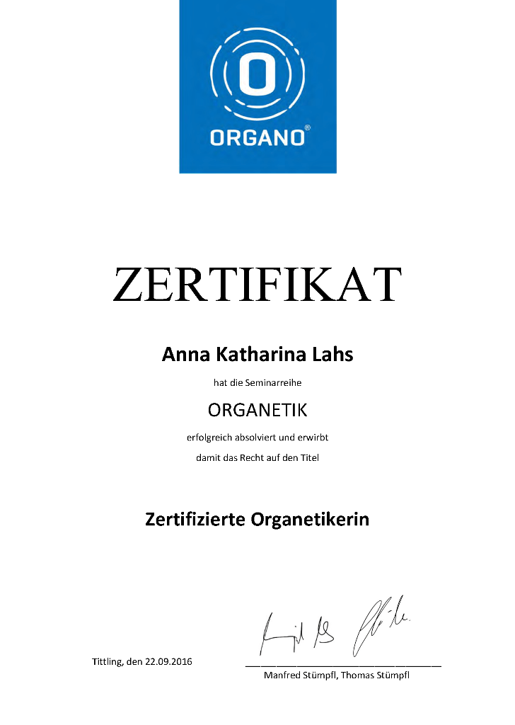 19.01.2008 – laufend: Organetikausbildung für Menschen und Tiere mit ständigen Weiterbildungen (Kurse, Teilnahme an allen Organetiker-tagen und allen Beiträgen von ORGANO-TV.)
